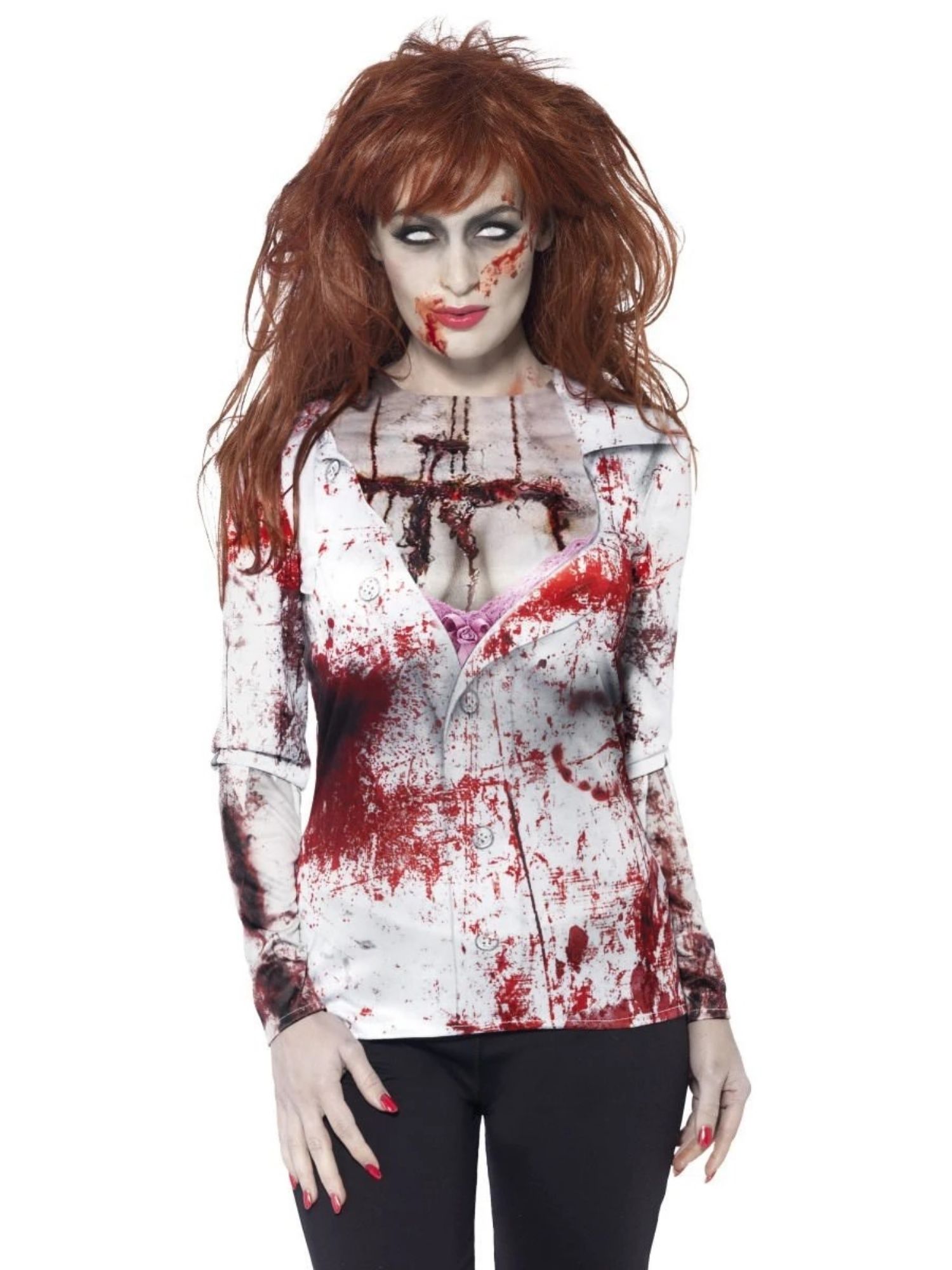 Smiffys 42 White And Red Sublimated Print Zombie Women Adult Halloween Costume Large